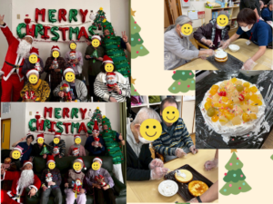 松本デイサービスセンター国分では今年も12月22日23日にクリスマス会が行われました。今年はケーキを作ったり、みんなで練習したダンスを踊りました。素敵な笑顔がたくさんみられて、いい時間を過ごすことが出来ました。