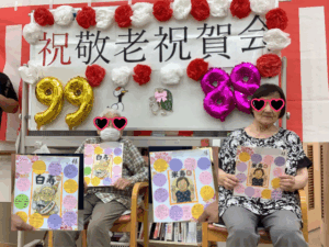 松本デイサービスセンター国分では、日頃の感謝の気持ちを込めて、スタッフ一同で企画を準備。ご利用者さまの笑顔がたくさん見られる一日となりました。白寿、米寿を迎えられたご利用者様のお祝いをみんなでさせて頂きました。スタッフからのメッセージカードのプレゼントに涙を浮かべて喜んでくださいました。
