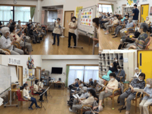 松本デイサービスセンター国分では、今月もきらきら団の皆さんが来てくれました。毎回楽しい出し物をありがとうございます。