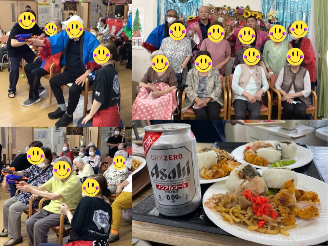 7月16日と17日に恒例の夏祭りを開催しました。今回は射的や記念撮影、盆踊りなど盛りだくさん!いつもと違う真剣な表情で射的に挑戦されていたのが印象的でした。職員手作りの昼食も大好評でした!