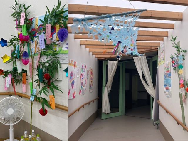 松本デイサービスセンター国分では、毎年利用者様の願い事を短冊に書いて頂いております。健康に関することやご家族への感謝など、皆様の思いが届きますように・・・。